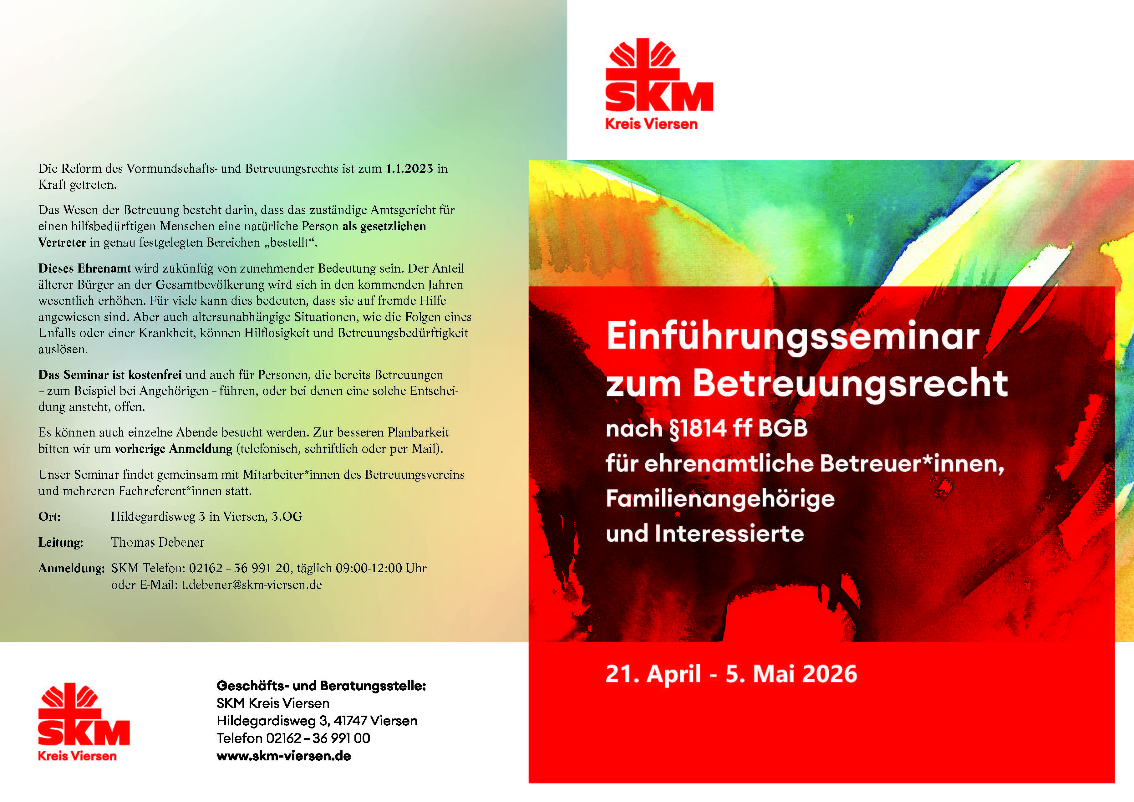 Mit der Besetzung dieser Stelle setzt der SKM Kreis Viersen ein klares Zeichen für die Stärkung des Ehrenamts in der Vormundschaft und freut sich auf die Zusammenarbeit mit Herrn Debener.